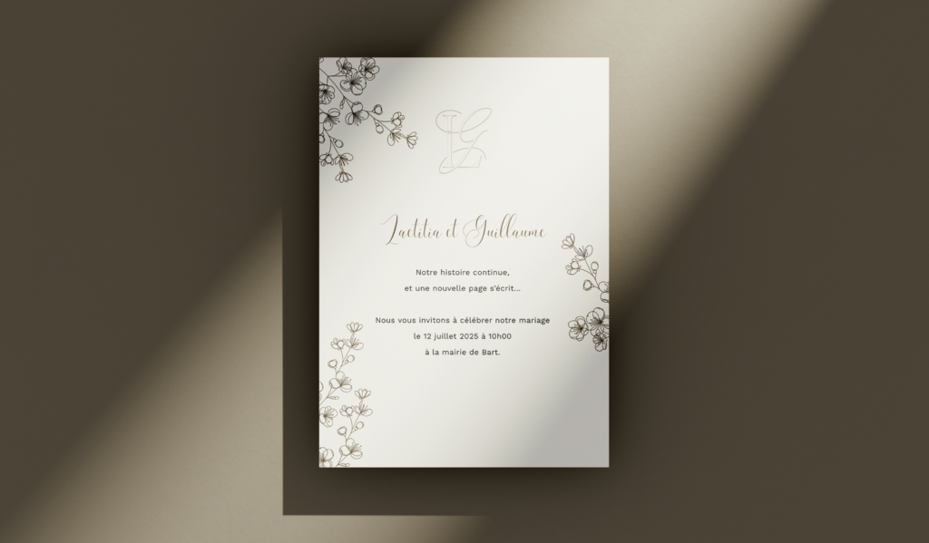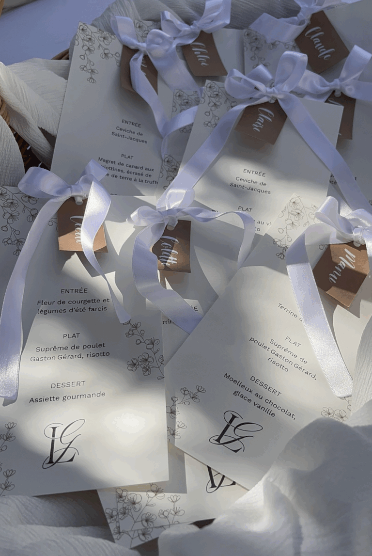 L’ensemble du travail visait à créer une identité visuelle harmonieuse et reconnaissable, reflétant la personnalité des mariés.